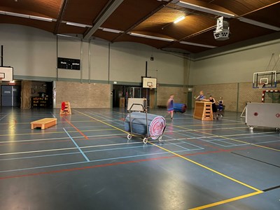 Na de lunch was de sporthal omgetoverd tot een veld vol obstakels en schuilplekken. Tijd voor een lekker potje laserschieten! Fanatiek gingen de teams elkaar te lijf om zo de vlag bij elkaar te kunnen veroveren. Een groot succes!