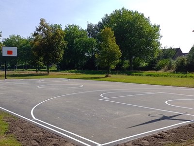 De werkzaamheden beginnen in week 28 en duren 4 weken. Vanaf week 33 kun je dus lekker buiten basketballen op het nieuwe veldje!