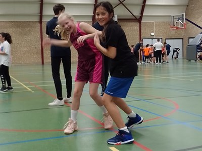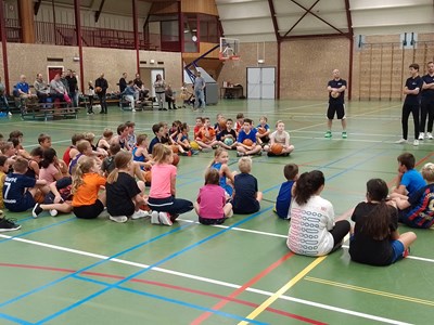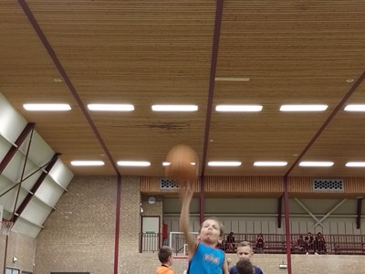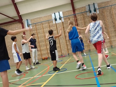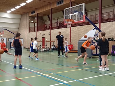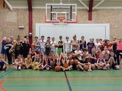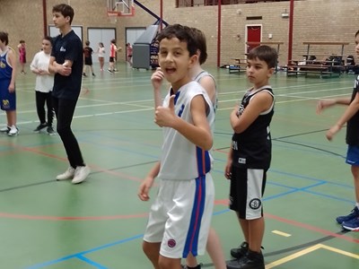 Door het extra uurtje vannacht begon iedereen extra uitgerust aan de warm-up. Daarna werden in kleinere groepen alle basics van het basketball geoefend. Er werd fanatiek gedribbeld, geschoten en layups gelopen. Na een pauze met ranja en een gezonde snack was het tijd voor partijtje!