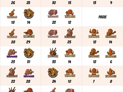 Bij de Senioren ging de winst naar de Trekzakken en bij U8/U10/U12 naar de Gitaristen! Maarrrr, omdat gezelligheid leuker is dan winnen, gingen de consumptiebonnen naar de Contrabassen en de Drummers!