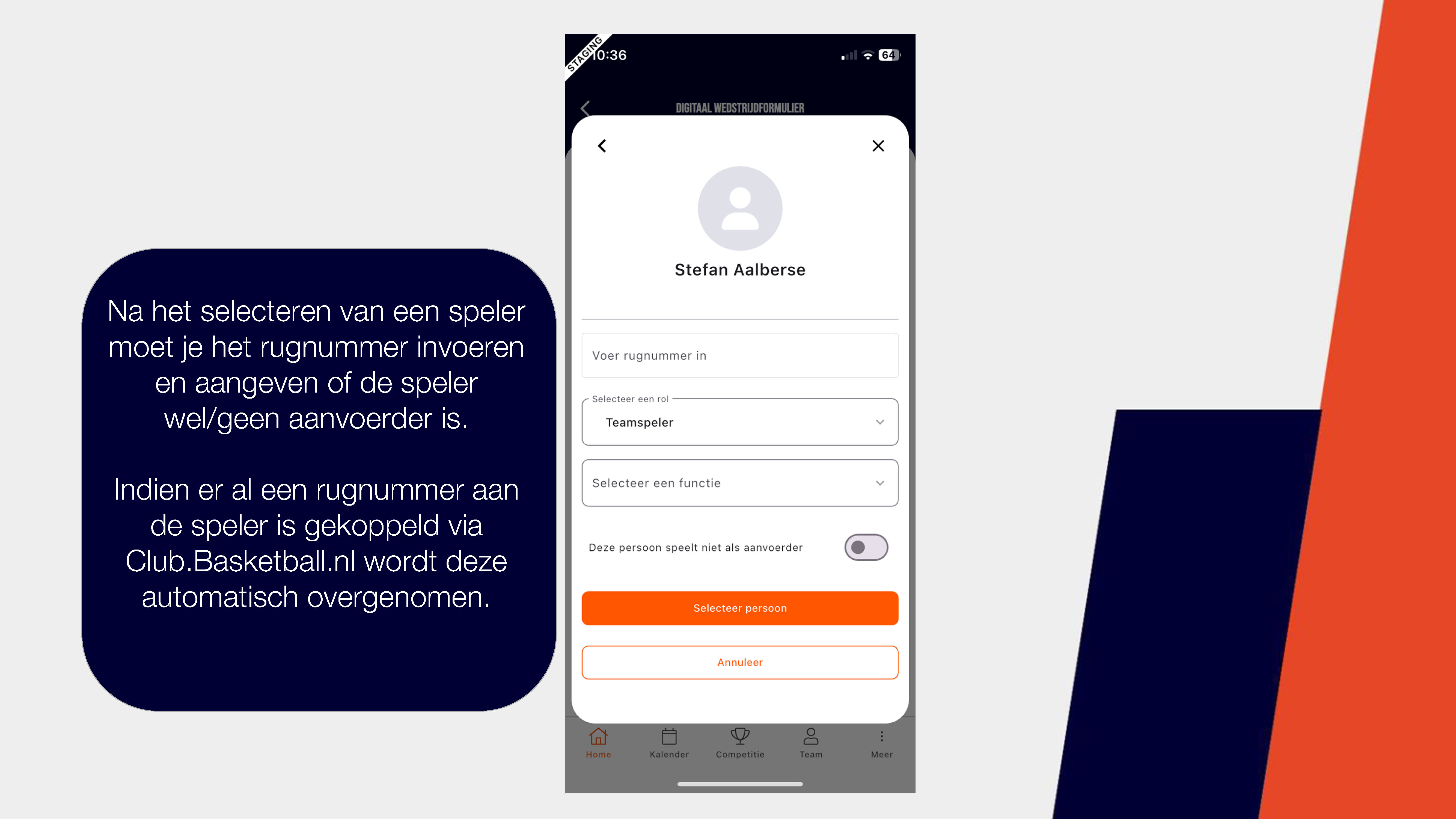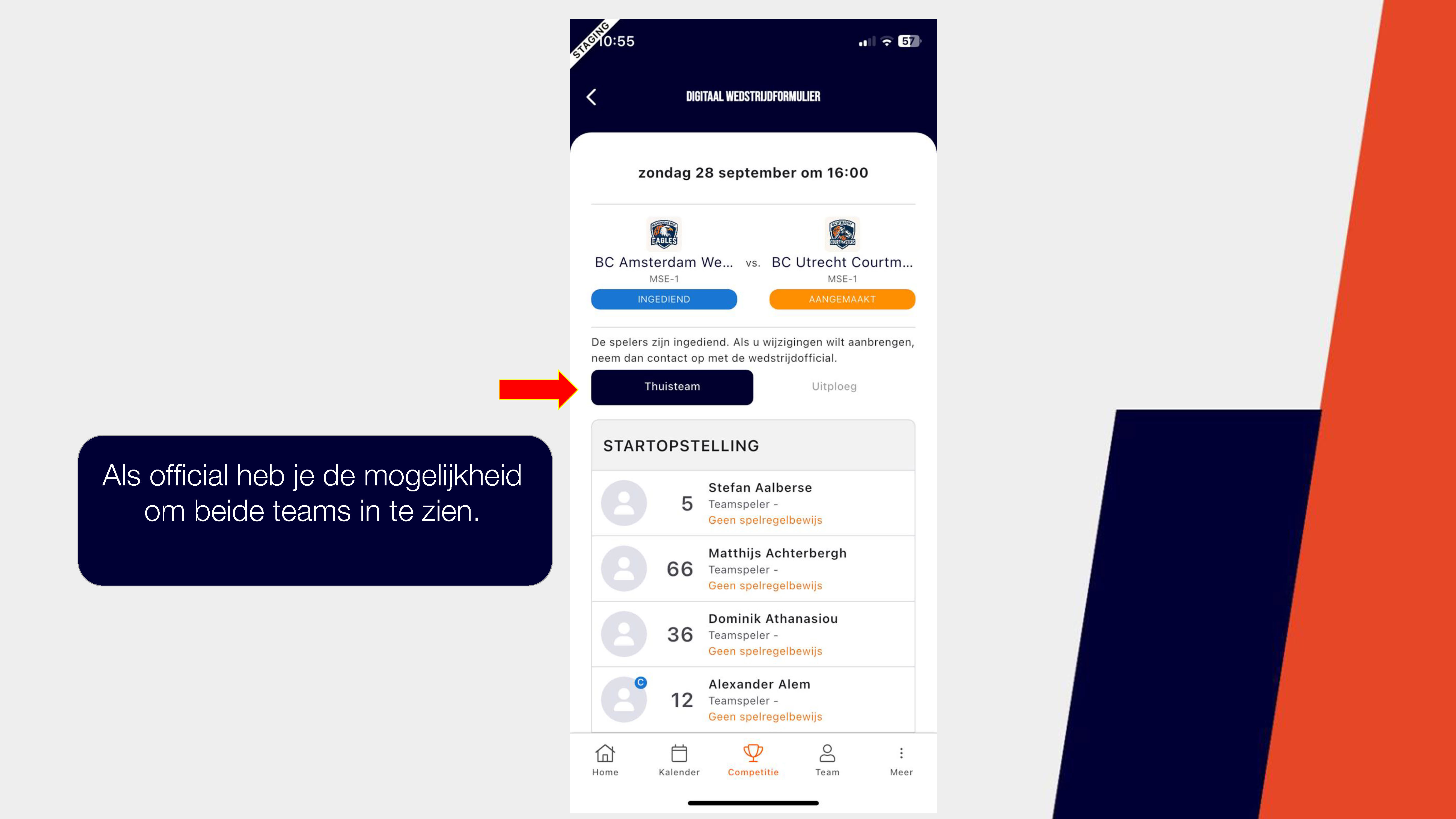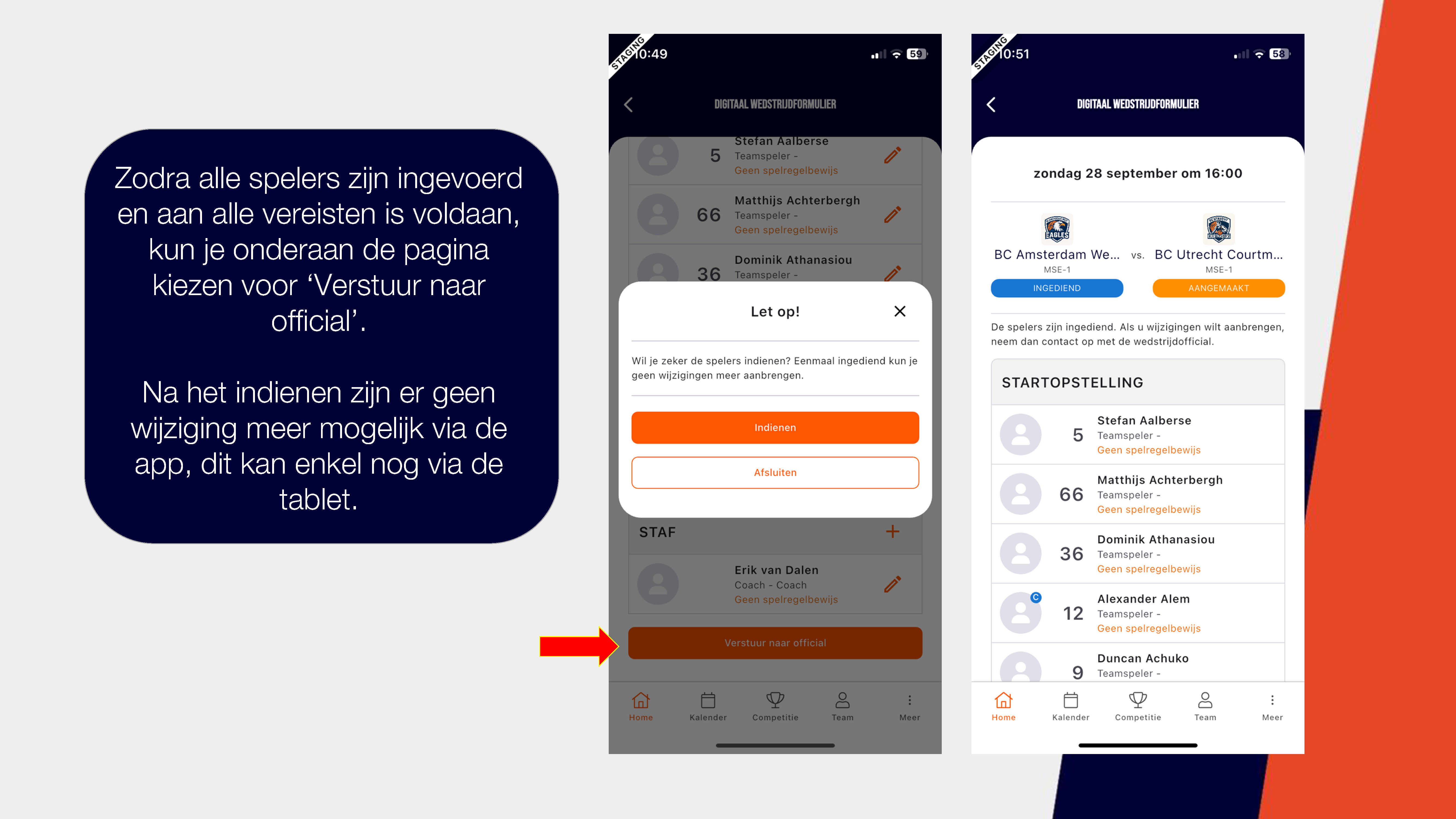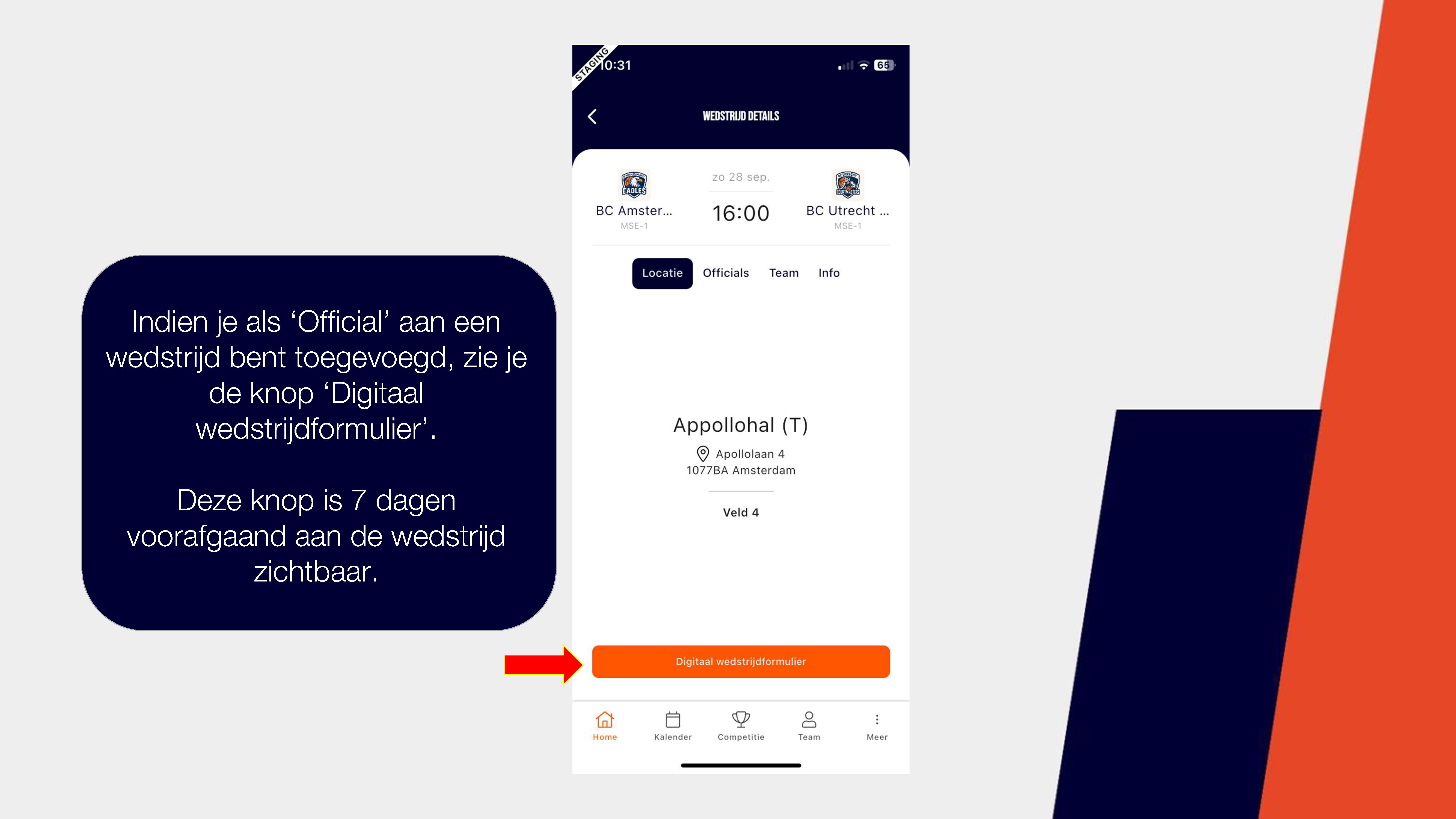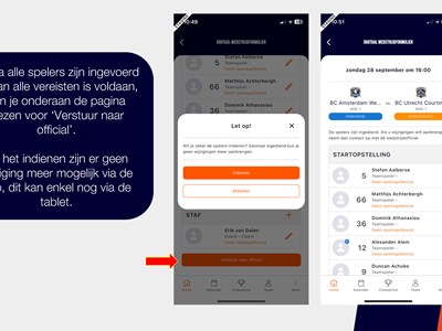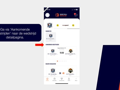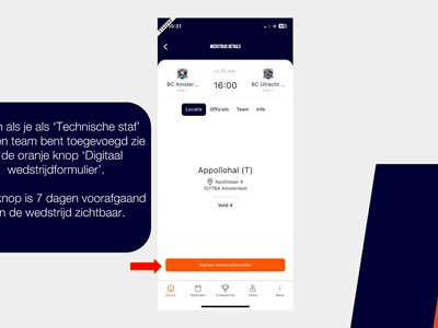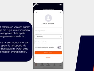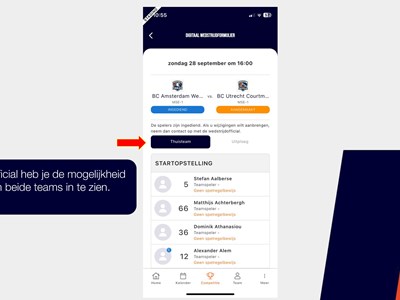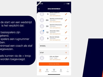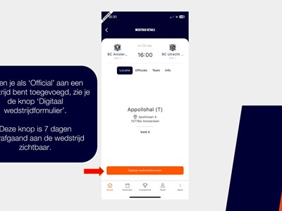 Een handleiding over het invullen van het digitale wedstrijd formulier via de basketball-nl app vind je hier of bekijk de foto's hieronder
