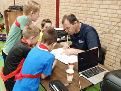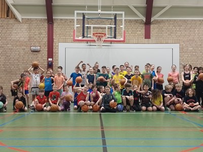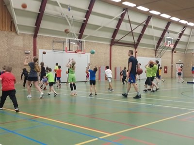 Rond 09.00 uur stroomde de sporthal vol. Alle deelnemers kregen een stevige warm-up verzorgd door Heren 1 speler Bas van Bladel. Daarna was het tijd voor de eerste ronde! Fanatiek speelden de kinderen onderling wedstrijdjes, aangemoedigd door de vele ouders die waren meegekomen.