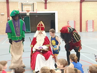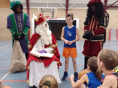 We waren nog maar net begonnen met de vrijdagtraining toen er ineens Pieten de zaal binnen kwamen rennen! Natuurlijk gevolgd door Sinterklaas! Ineens was de sporthal een groot feest!