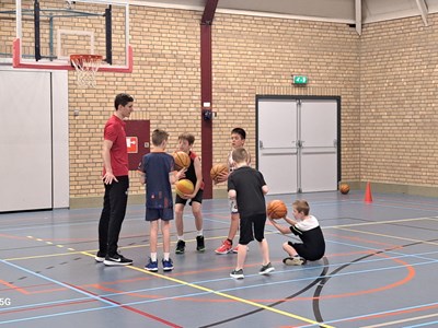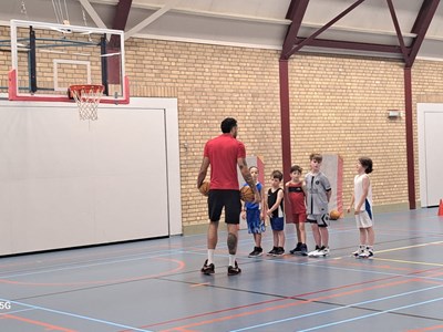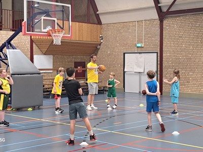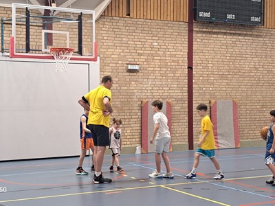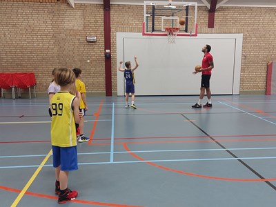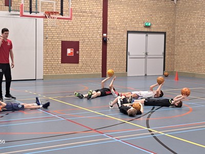 Als eerste stond een stevige ochtendtraining op het programma onder leiding van de jeugdtrainers van Vlijmscherp SVH. De verrassing bij de kinderen was groot toen ineens Jito Kok en Thijs Beens de hal binnen kwamen lopen! Jito Kok en Thijs Beens zijn professionele basketballers die spelen bij Heroes Den Bosch en zeer bekend zijn bij de jonge basketballers! Thijs Beens is zelfs begonnen met basketballen bij Vlijmscherp SVH!