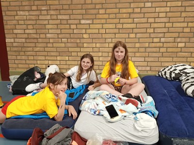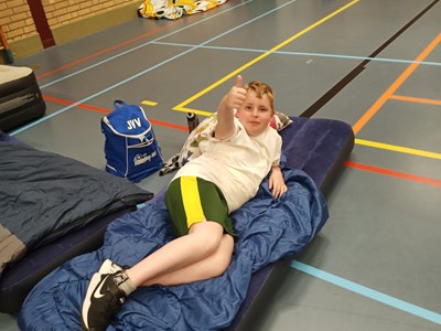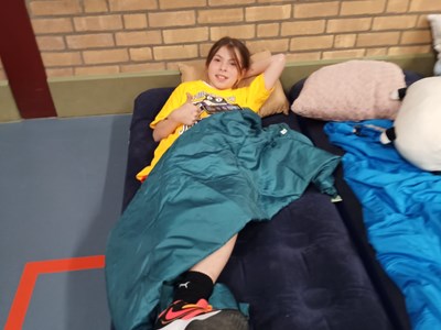 Zaterdagochtend rond 9.30 uur stormden de 32 deelnemers de sporthal binnen. Bepakt met luchtbedden, slaapzakken en alle andere spullen die nodig zijn voor een gezellige logeerpartij in de sporthal. Ze hadden er duidelijk veel zin in!