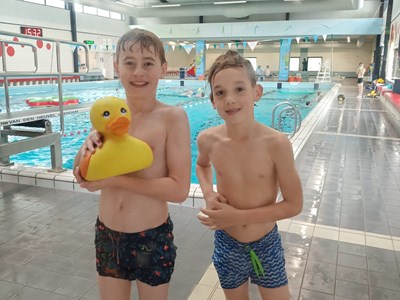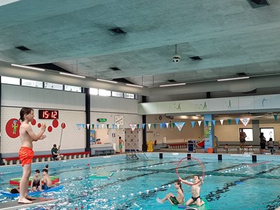 Na deze mentale inspanning stond de volgende activiteit alweer op het programma: zwemmen in Die Heygrave! Dat was, zoals altijd, een groot succes met veel gespetter en plezier in het water.