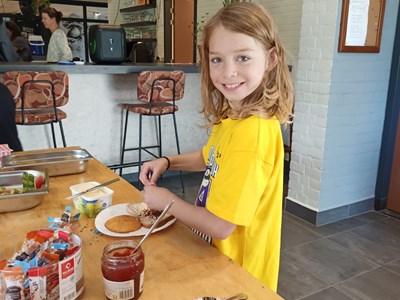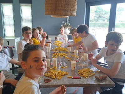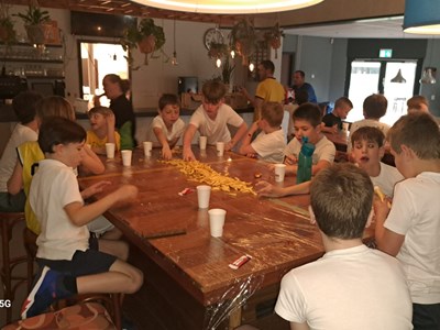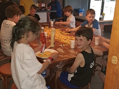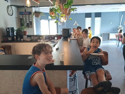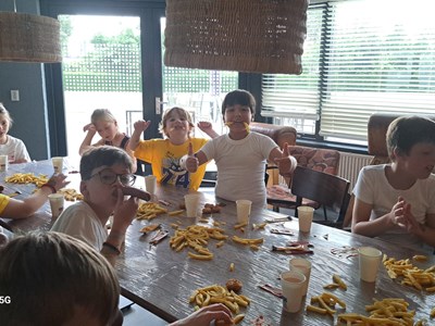 Na het zwemmen was er ruimte voor ontspanning en natuurlijk het diner! En wat smaakt er altijd extra lekker na het zwemmen? Juist: friet!