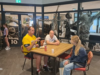 Na een leuk interview was het tijd voor de training! De jeugdleden waren onder de indruk van de vaardigheden van Jito en Thijs en genoten zichtbaar van de tips en tricks die zij kregen van deze topspelers. Na de training werden de kamp shirts nog unieker gemaakt met handtekeningen van Jito en Thijs!