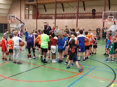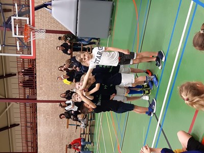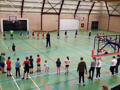 Na een gezamenlijke warming-up waarbij volop gedribbeld, gescoord en gerend moest worden werden de wedstrijden opgestart. Er waren 3 poules van 5 die gesplitst waren in groep 3/4 , 5/6 en groep 7,8. Daar waar er bij groep 7/8 regelmatig op het scherpst van de snede werd gespeeld omdat er een aantal kinderen al op basketbal zitten en niet wilde verliezen, was het bij de groepen 3/4 en 5/6 toch vooral het plezier dat er vanaf spatte en was de winst minder belangrijk.