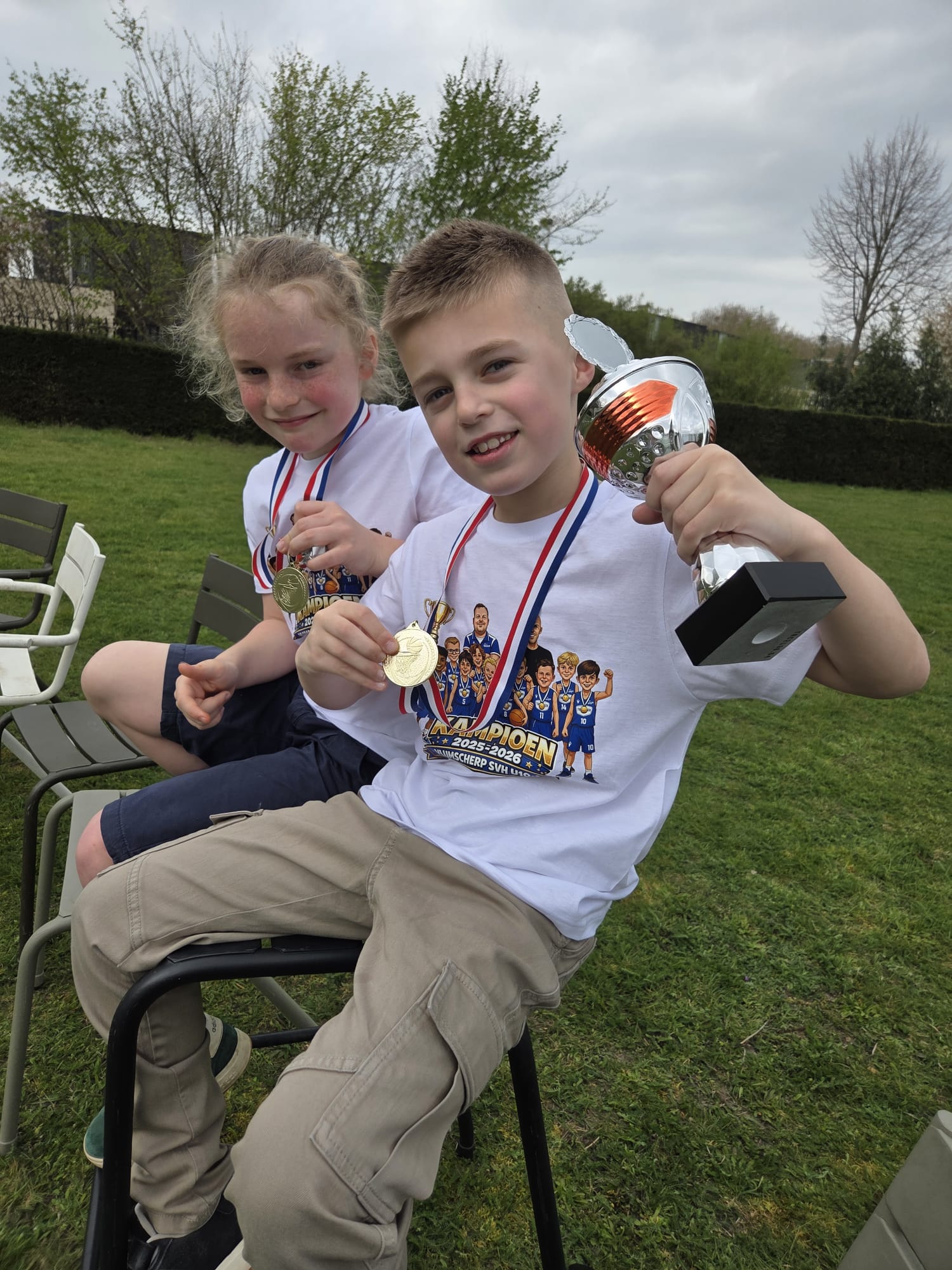 De dag werd in stijl afgesloten in de kantine met friet, snacks en een prachtig kampioensshirt als blijvende herinnering aan dit topseizoen.