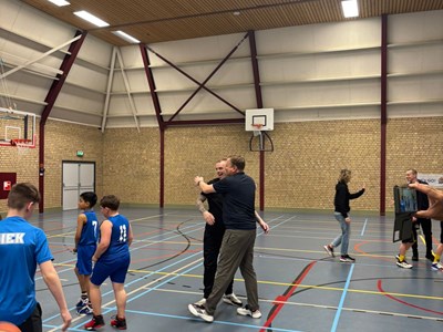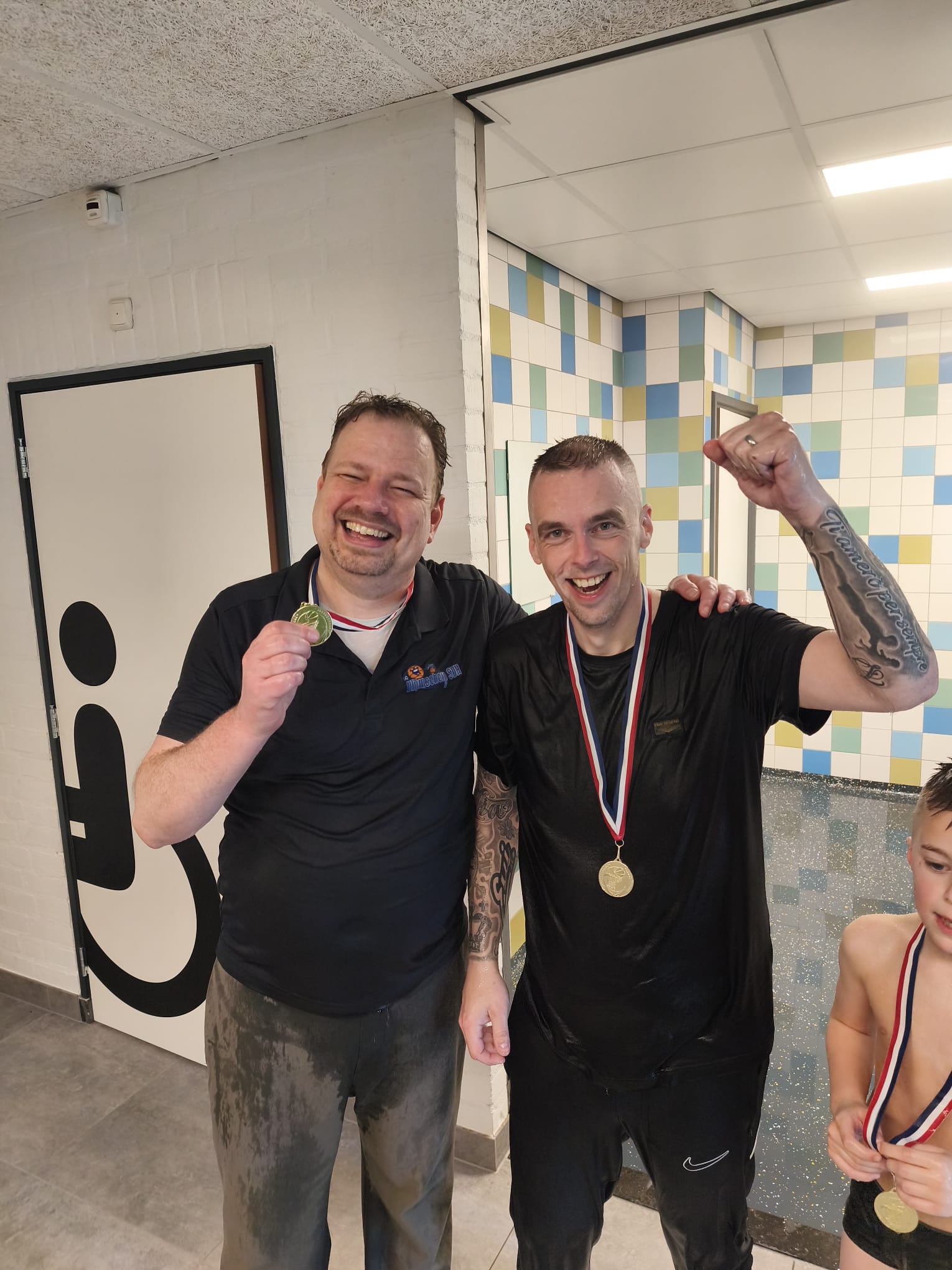 Jaap Koers reikte namens het bestuur de beker en medailles uit aan de kersverse kampioenen. Daarna was het tijd voor de traditie waar de coaches Ralph en Mario waarschijnlijk al de hele week voor vreesden: een ijskoude douchebeurt! Uiteindelijk belandde bijna het hele team onder de douche, wat zorgde voor een groot waterballet.