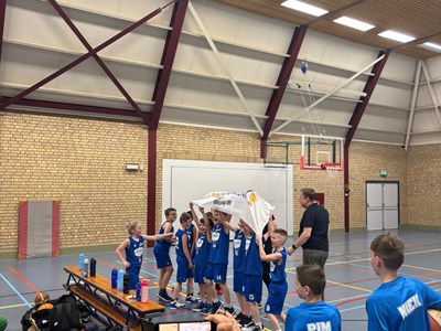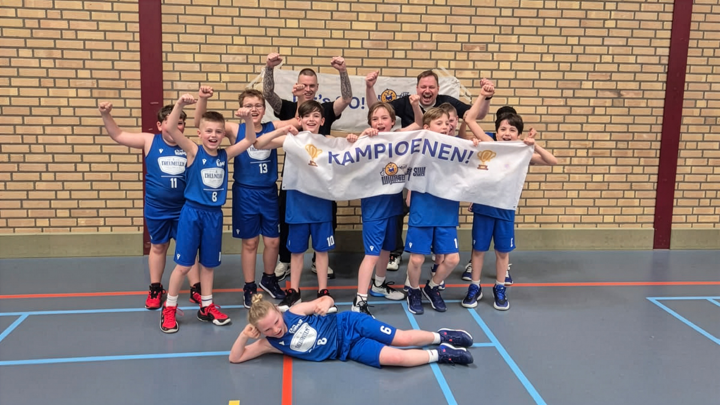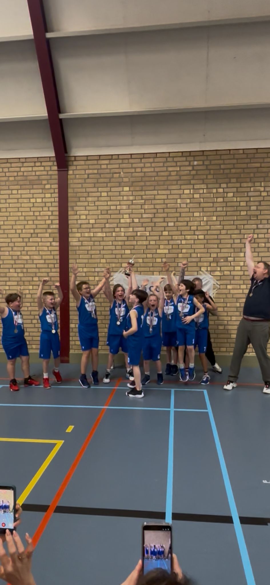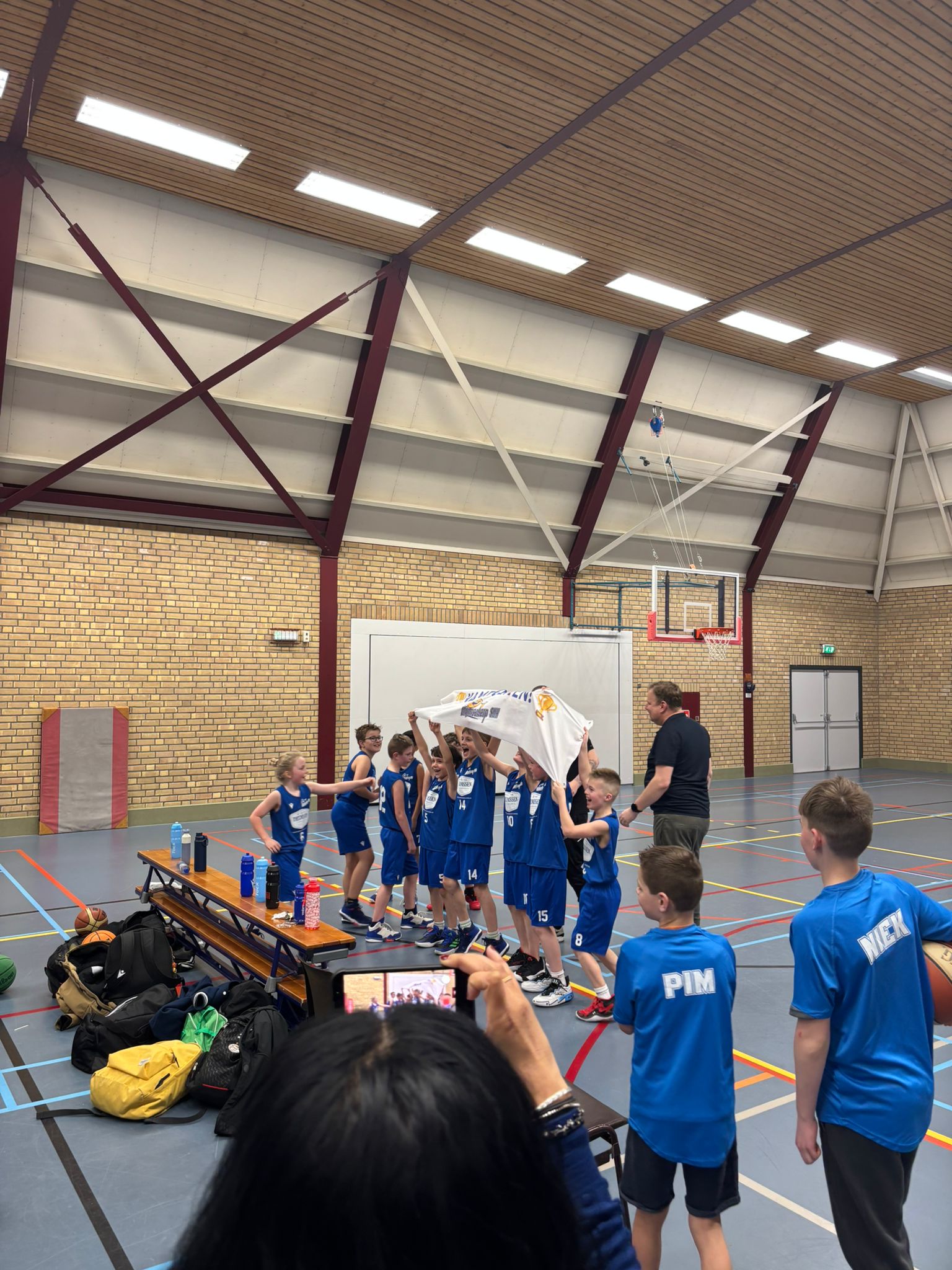 Gisteren was het zover: de mannen van de U10-1 hebben het kampioenschap definitief binnengesleept! In een spannende thuiswedstrijd werd Yellow Sox met 50-34 verslagen. Met nog één wedstrijd op het programma is het team nu al onbereikbaar voor de concurrentie. En dat werd gevierd!
