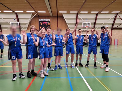 U14-1 kon afgelopen zondag ongeslagen kampioen worden. Daarvoor moest nog wel gewonnen worden van Simple Dribble, de nummer twee van de ranking. Het werd een spannende wedstrijd met heerlijk basketball van beide kanten. Bij rust had U14-1 nog een kleine achterstand van 3 punten, maar deze werd in het derde kwart vakkundig weggepoetst. Uiteindelijk stond er aan het einde van de wedstrijd 77-59 op het scorebord en kon het kampioenschap gevierd worden!