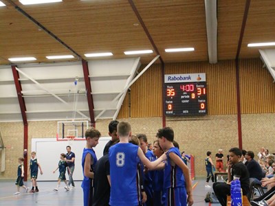 Na de rust ging het spel op en neer. Periode 5 liep Vlijmscherp SVH weer wat uit, periode 6 en 7 kwam High Five langzaam weer dichterbij. De laatste periode startte met een 35-31 stand in het voordeel van de Heusdenaren. Door vrije worpen liep Vlijmscherp uit naar 37-31. Een driepunter bracht de spanning weer even terug, maar de kids van Vlijmscherp SVH speelden de wedstrijd netjes uit en bepaalden de eindstand op 43-34!