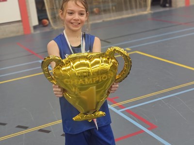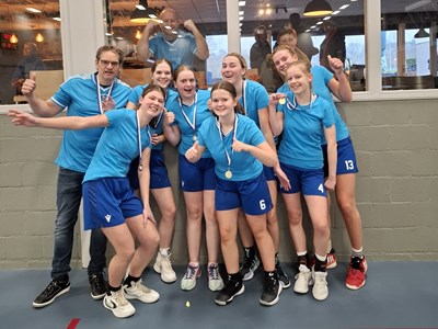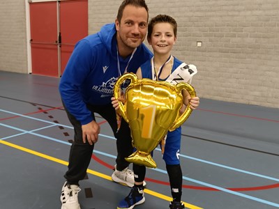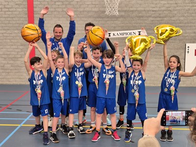 U10-1 liet dit seizoen een enorme groei zien: letterlijk en figuurlijk! Werden vorig jaar nog bijna alle wedstrijden verloren, dit seizoen stond er duidelijk geen maat op dit team! Elke wedstrijd werd er beter verdedigd en goed samen gespeeld. Eén wedstrijd was het even billenknijpen (25-24 winst tegen High Five uit Tilburg) maar voor de rest werd elke tegenstander dik verslagen. Gisteren na de wedstrijd in Den Dungen werden de nieuwbakken kampioenen gehuldigd met een mooie medaille en een grote zak snoep! Gefeliciteerd mannen!